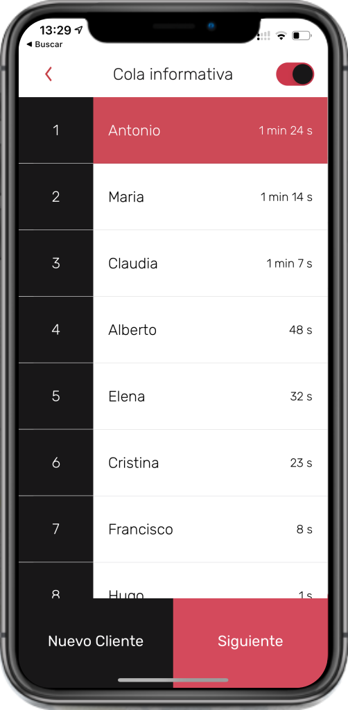 | Límite No se aceptarán clientes en las colas que han superado el aforo. |